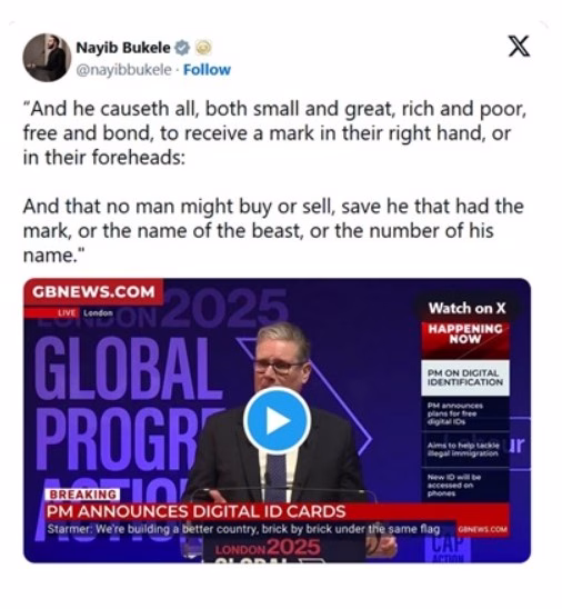Salvadoran President Nayib Bukele compared digital IDs to the mark of the beast.